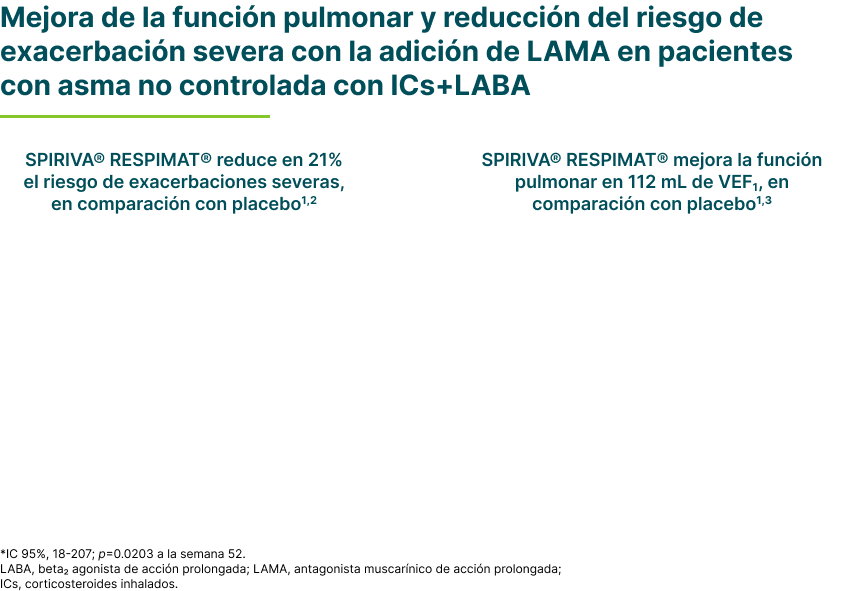 - Boehringer Ingelheim Ltda. Adición de LAMA en pacientes con asma no controlada con ICS/LABA: ¿Qué dice la evidencia? Producciones Científicas Ltda. Santiago, 2023. “Información Médica Actualizada” ISSN 1657-5970.