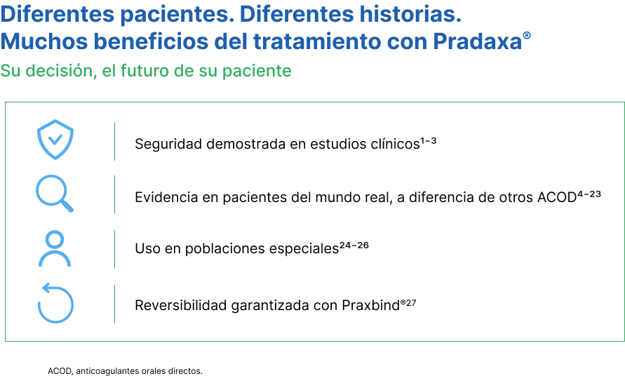 Boehringer Ingelheim Ltda. Dabigatrán (Pradaxa®) vs. warfarina en la prevención del accidente cerebrovascular en pacientes con fibrilación auricular. Producciones Científicas Ltda. Santiago, 2023. “Información Médica Actualizada” ISSN 1657-5970.