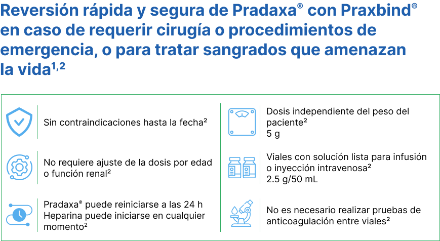 Boehringer Ingelheim International GmbH. IPP-A, Praxbind® recombinante (solución inyectable 2,5 g/ 50 mL). Folleto de información al profesional. Alemania, 2016. Disponible bajo solicitud con el titular del registro sanitario.